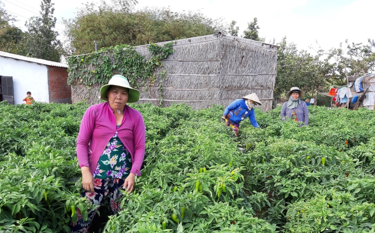 | Từ nguồn vốn vay ưu đãi của Ngân hàng chính sách xã hội, chị Danh Kim Huôi, ở ấp Sóc Chùa, xã Thuận Hòa (huyện Cầu Ngang – Trà Vinh) thực hiện mô hình trồng ớt sừng trâu vàng chuyên canh đã có thu nhập ổn định và thoát nghèo bền vững |