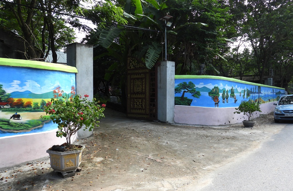 | Tường rào nhà dân được nâng tầm thành những "con đường bích họa" sinh động ở Hoàng Hoa. (Ảnh: Xuân Nguyễn) |