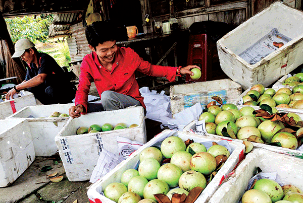 Tiểu thương thu mua trái vú sữa của người dân ở huyện Phong Ðiền, TP Cần Thơ.