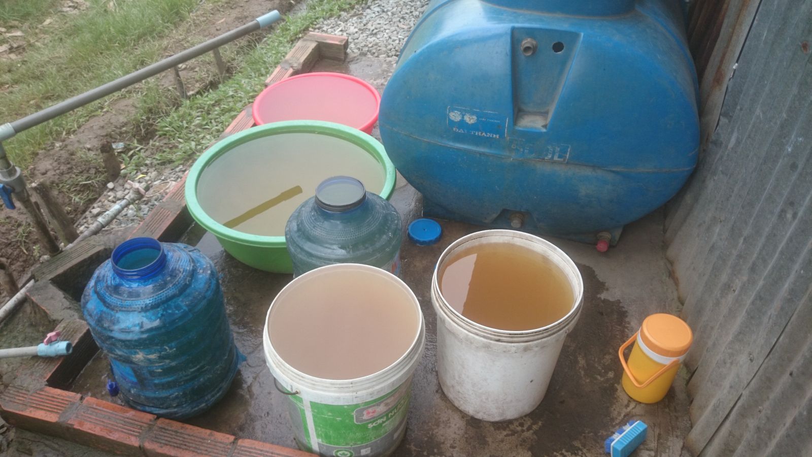 Nước sông được người dân múc lên sử dụng tạm nên rất đục, chất lượng không bảo đảm