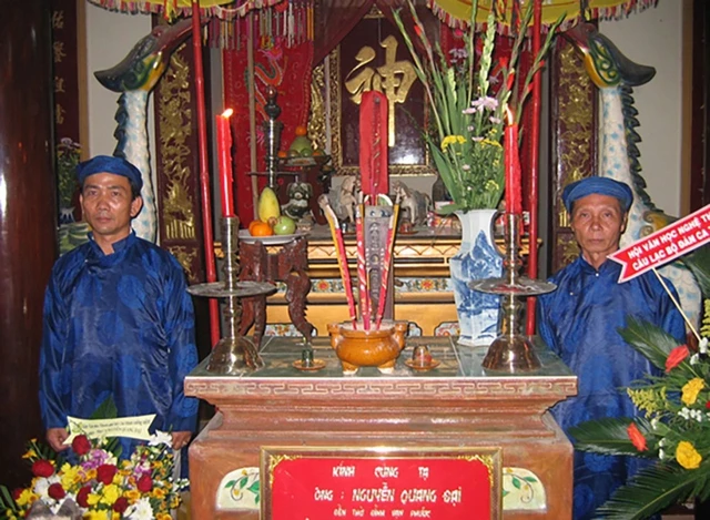Bàn thờ nhạc sư Nguyễn Quang Đại tại đình Vạn Phước, Cần Giuộc, Long An