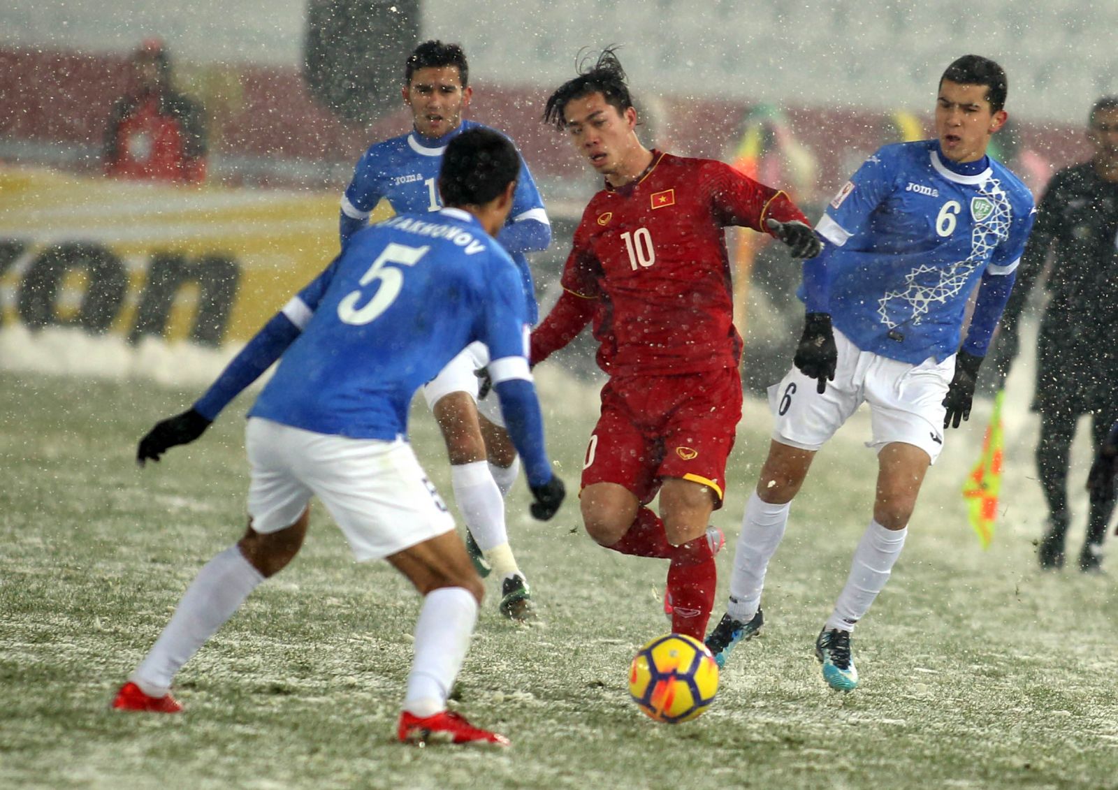 Dư luận cho rằng U-23 Uzbekistan có lợi thế hơn VN khi chơi trên mặt sân đầy tuyết. Ảnh: N.K