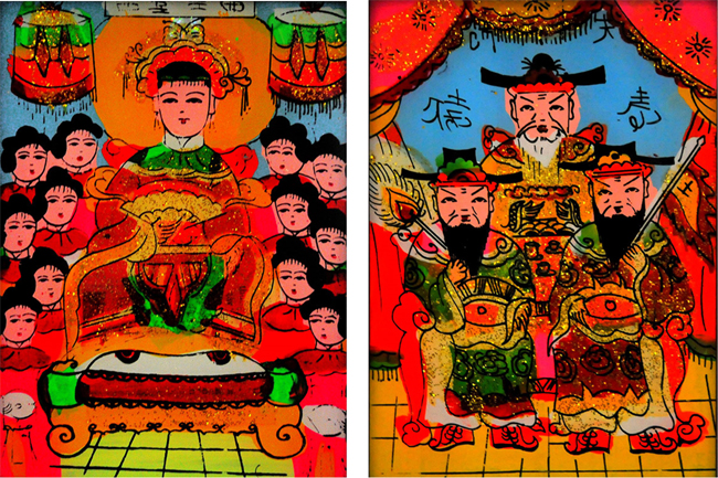 | Một bức tranh kiếng Nam Bộ vui tươi, mang đậm dấu ấn của người dân Nam Bộ, những năm 1940. |