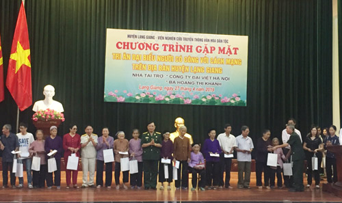 Đại diện cho các gia đình thân nhân liệt sỹ tại buổi gặp mặt tri ân ông Trần Văn Phùng (92 tuổi, 60 năm tuổi đảng) bố của liệt sỹ Đại tá, Trần Quang Khải xúc động nói: Việc tặng quà hôm nay là niềm vinh dự lớn cho các gia đình chúng tôi, bởi Đảng và Nhà nước luôn quan tâm ghi nhớ công lao của các liệt sỹ đã hy sinh cả cuộc đời mình cho cách mạng. Các đồng chí đã thực hiện tốt các chế độ ưu đãi, đảm bảo chu đáo, kịp thời đặc biệt là đối với gia đình có hoàn cảnh khó khăn, mong muốn của chúng tôi là tiếp tục được quan tâm kịp thời hơn nữa để vơi đi mất mát và những khó khăn trong cuộc sống… ông Trần Văn Phùng đã gửi lời cảm ơn đến cấp ủy, chính quyền huyện Lạng Giang, Chi hội HTLS Ba Đình, Viện nghiên cứu truyền thông văn hóa dân tộc và nhà tài trợ đã trao quà và động viên./.