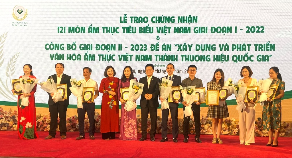 Ngày 29/9, tại Hà Nội, Hiệp hội Văn hóa ẩm thực Việt Nam (VCCA) tổ chức trao chứng nhận 121 món ẩm thực tiêu biểu giai đoạn I- 2022 và công bố giai đoạn II - 2023 Đề án “Xây dựng và phát triển Văn hóa ẩm thực Việt Nam thành thương hiệu quốc gia”.