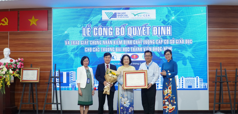 4 trường đại học thành viên ĐHQG-HCM đạt chuẩn kiểm định theo bộ tiêu chuẩn của Bộ Giáo dục và Đào tạo được Trung tâm Kiểm định chất lượng - Đại học Quốc gia Hà Nội (VNU-CEA) trao giấy chứng nhận gồm: Trường Đại học Khoa học Tự nhiên, Trường Đại học Công nghệ Thông tin, Trường Đại học Khoa học Xã hội và Nhân văn, và Trường Đại học Kinh tế - Luật.