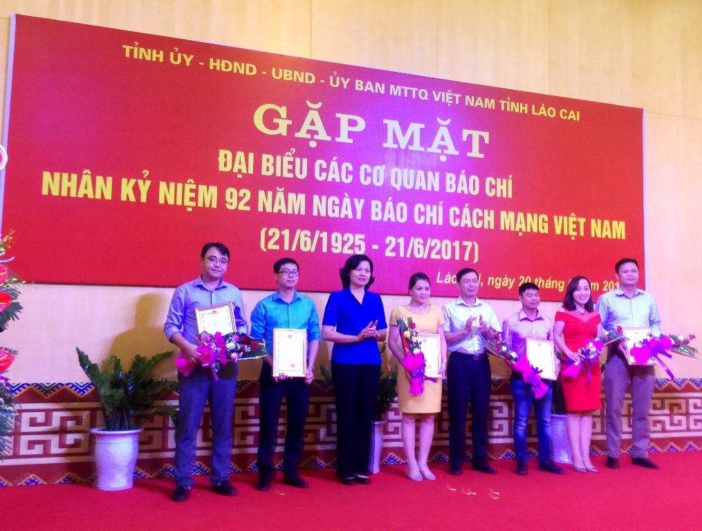 Nhân dịp này tỉnh Lào Cai đã công bố và trao Giải thưởng Báo chí Lào Cai lần thứ VIII - 2017 của UBND tỉnh cho 41 tác phẩm đoạt giải; trong đó, tặng thưởng giải A cho 5 tác phẩm; giải B cho 8 tác phẩm; giải C cho 12 tác phẩm và giải Khuyến khích cho 16 tác phẩm./.