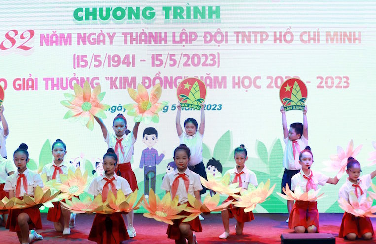 | Quang cảnh chương trình kỷ niệm 82 năm ngày thành lập Đội Thiếu niên tiền phong Hồ Chí Minh |