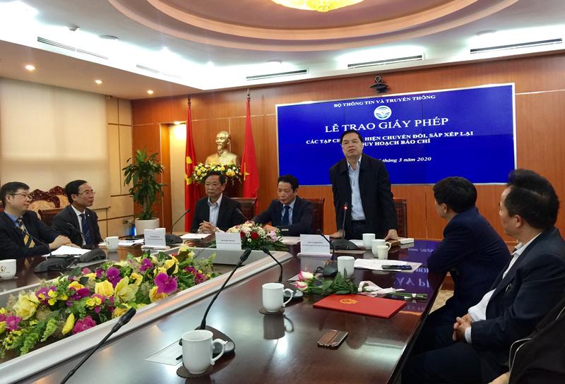 Chiều 4/3, Bộ Thông tin và Truyền thông tổ chức Lễ trao giấy phép cho các tạp chí thực hiện chuyển đổi, sắp xếp lại theo quy hoạch báo chí.