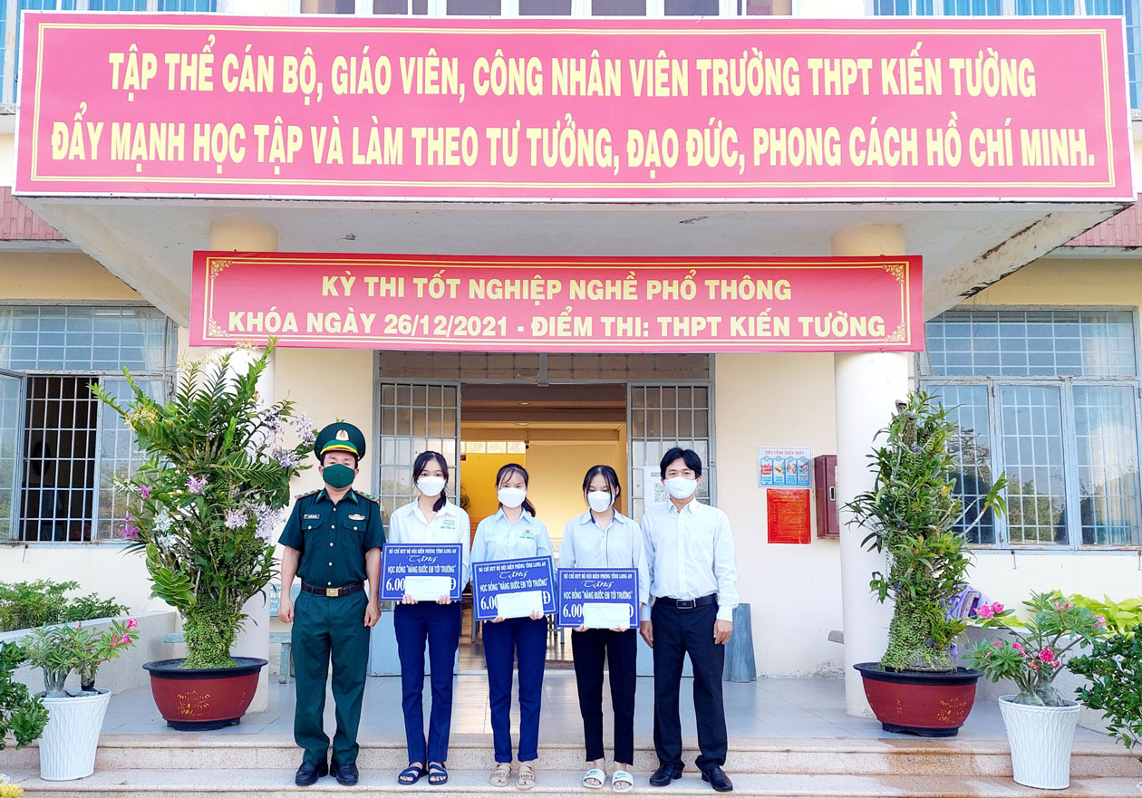 Thực hiện Chương trình “Nâng bước em tới trường” do Bộ Tư lệnh Bộ đội Biên phòng phát động, đồn Biên phòng Cửa khẩu quốc tế Bình Hiệp phối hợp Ban Giám hiệu Trường THPT thị xã Kiến Tường, Trường THCS Võ Văn Kiệt (xã Bình Tân, thị xã Kiến Tường) tổ chức trao học bổng “Nâng bước em tới trường” cho 4 học sinh có hoàn cảnh khó khăn, vươn lên đạt thành tích cao trong học tập. Mỗi phần học bổng trị giá 6.000.000 đồng.