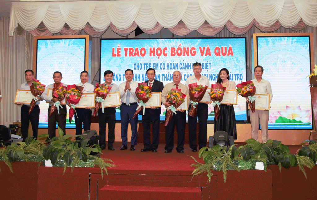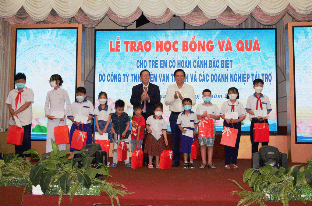 Theo đó, Công ty TNHH Nệm Vạn Thành, các doanh nghiệp và mạnh thường quân trao tặng học bổng và quà cho 114 trẻ em có hoàn cảnh đặc biệt với tổng kinh phí 880 triệu đồng. Mỗi suất học bổng và quà trị giá 7 triệu 350 ngàn đồng. Bên cạnh đó, các doanh nghiệp và mạnh thường quân còn hỗ trợ cho Qũy Bảo trợ trẻ em tỉnh với số tiền 710 triệu đồng.