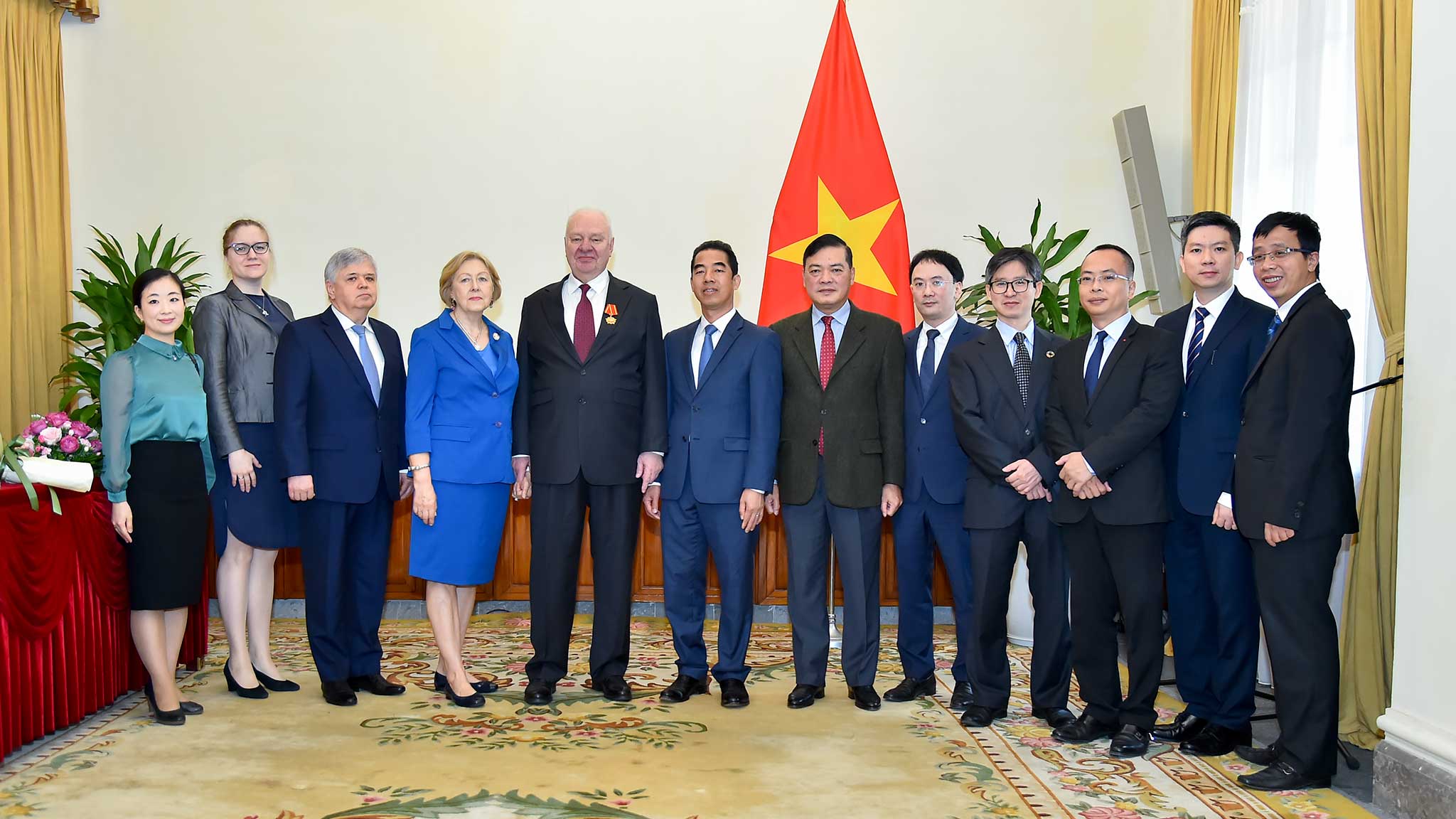 | Thừa ủy quyền của Tổng Bí thư, Chủ tịch nước Nguyễn Phú Trọng, Thứ trưởng Bộ Ngoại giao Tô Anh Dũng trao tặng Huân chương Hữu nghị cho Ngài Konstantin Vnukov, Đại sứ đặc mệnh toàn quyền LB Nga tại Việt Nam |