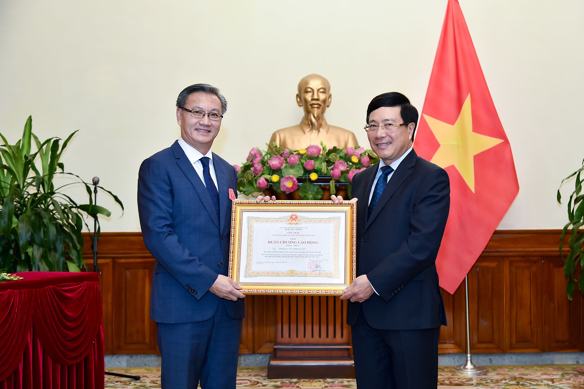 Chiều ngày 19/9/2019, tại Trụ sở Bộ Ngoại giao, đồng chí Phạm Bình Minh, Ủy viên Bộ Chính trị, Phó Thủ tướng, Bộ trưởng Ngoại giao đã thay mặt lãnh đạo Đảng và Nhà nước Việt Nam trao Huân chương Lao động hạng Nhất của Chủ tịch nước Cộng hòa Xã hội chủ nghĩa Việt Nam cho Đại sứ Lào tại Việt Nam Thoong-sa-vẳn Phôm-vi-hản nhân dịp sắp kết thúc nhiệm kỳ về nước.