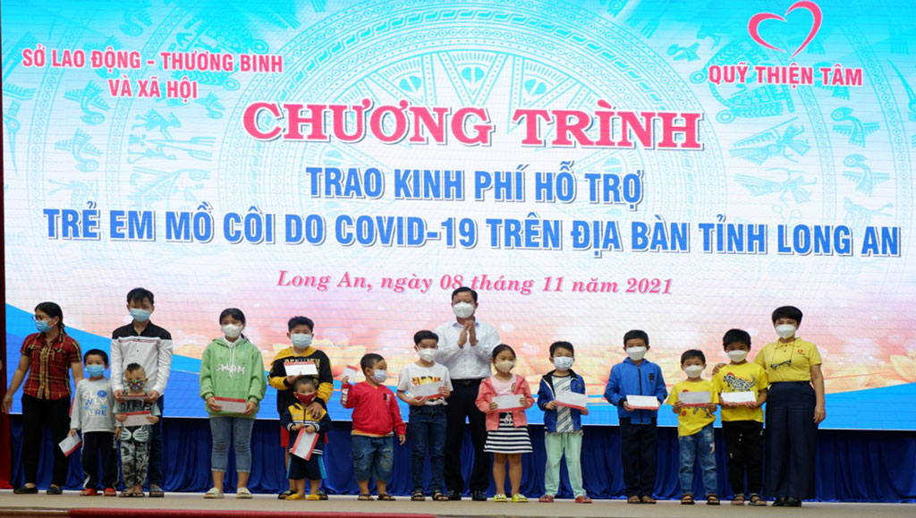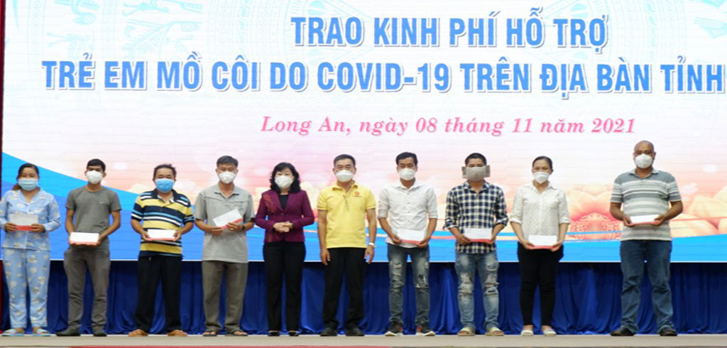 Nhằm chia sẻ với trẻ em mồ côi do Covid-19, thời gian qua, Long An tích cực vận động xã hội hóa từ các cá nhân, tổ chức, doanh nghiệp hỗ trợ trẻ em mồ côi do ảnh hưởng của dịch Covid-19 như sữa, học bổng, máy tính, sổ tiết kiệm, tiền mặt,…với tổng số tiền trên 620 triệu đồng.