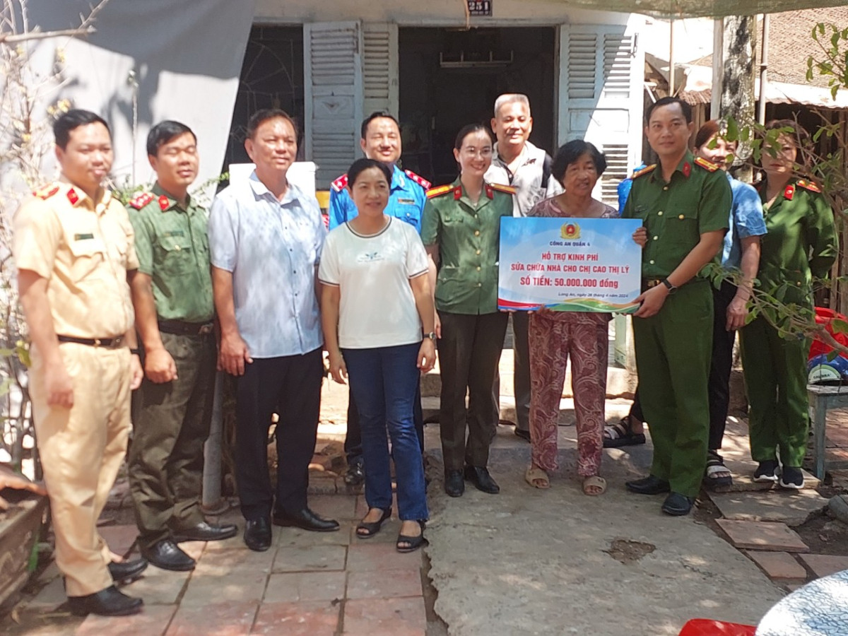 Công an quận 4, TP.HCM đến huyện Vĩnh Hưng, tỉnh Long An trao tiền hỗ trợ sửa chữa nhà ở cho gia đình khó khăn và trao tặng xe đạp cho học sinh nghèo vượt khó học giỏi.