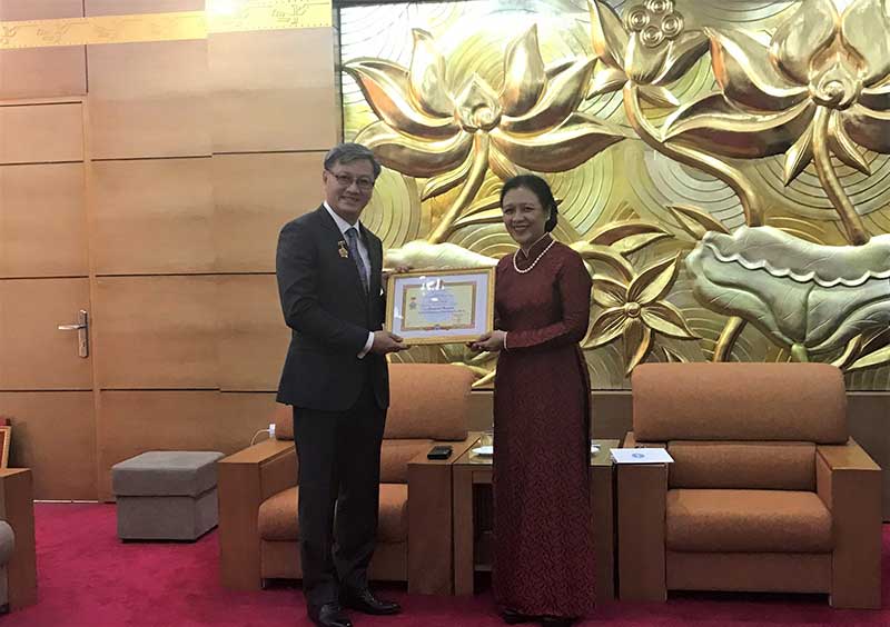 Thay mặt Đoàn Chủ tịch Liên hiệp các tổ chức hữu nghị Việt Nam, Chủ tịch Nguyễn Phương Nga trao Kỷ niệm chương “Vì hòa bình, hữu nghị giữa các dân tộc” tặng Đại sứ Thongsavanh Phomvihane. Đây là phần thưởng cao quý nhất của Liên hiệp các tổ chức hữu nghị Việt Nam nhằm tôn vinh những đóng góp không mệt mỏi của đồng chí Đại sứ trong việc thúc đẩy mối quan hệ hữu nghị vĩ đại, đoàn kết đặc biệt và hợp tác toàn diện giữa nhân dân hai nước Việt Nam và Lào.