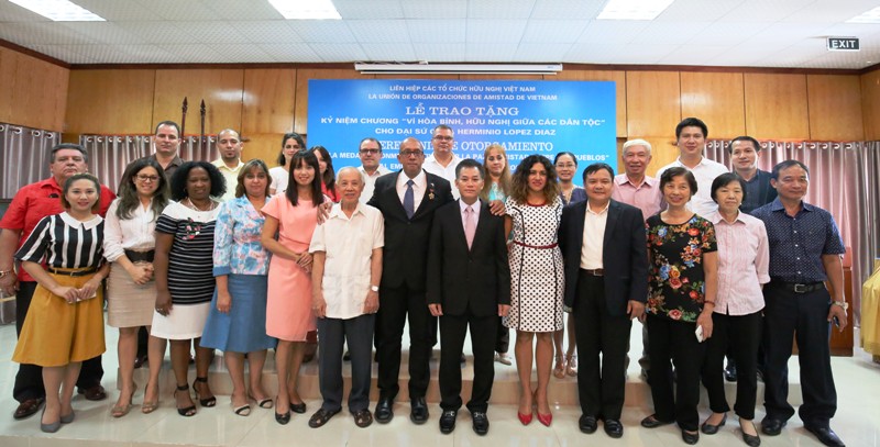 Bày tỏ vinh dự được trao tặng Kỷ niệm chương “ Vì hòa bình, hữu nghị giữa các dân tộc” – phần thưởng cao quý của Liên hiệp các tổ chức hữu nghị Việt Nam, Đại sứ Cuba Herminio Lopez Diaz gửi lời cảm ơn đến các ban, ngành, cơ quan hữu quan của Việt Nam trong đó có Liên hiệp các tổ chức hữu nghị Việt Nam và Hội hữu nghị Việt Nam – Cuba đã tích cực hợp tác và hỗ trợ Đại sứ quán Cuba trong thời gian qua.