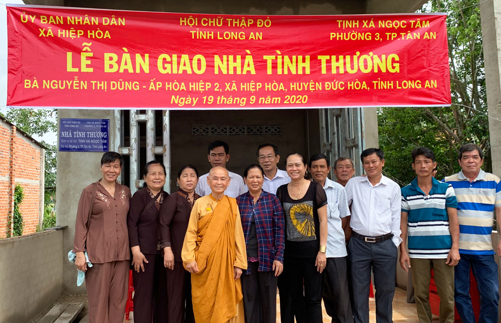 Theo đó, Hội Chữ thập đỏ tỉnh Long An kết nối với Tịnh xá Ngọc Tâm (phường 3, TP.Tân An) hỗ trợ kinh phí xây dựng nhà tình thương cho hộ bà Nguyễn Thị Dũng. Đây là hộ nghèo, không đất sản xuất và nhà ở, cuộc sống hết sức khó khăn.