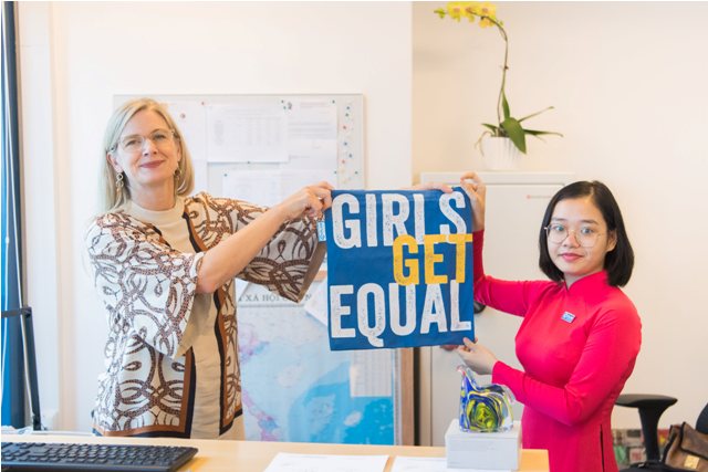 Hoạt động này hiện đang diễn ra tại Việt Nam và trên toàn thế giới với mục tiêu thách thức khuôn mẫu giới sai lệch và loại bỏ những rào cản của phân biệt đối xử. Hãy chung tay hành động để trẻ em gái Việt Nam có thể có cơ hội học tập, lãnh đạo, phát triển và đưa ra quyết định” - bà Đại sứ nhấn mạnh.