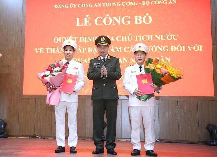 Tại buổi Lễ, thừa ủy quyền của Chủ tịch nước, Bộ trưởng Bộ Công an Tô Lâm đã trao Quyết định thăng cấp bậc hàm từ Thiếu tướng lên Trung tướng đối với đồng chí Lê Văn Tuyến, Ủy viên Ban Thường vụ Đảng ủy Công an Trung ương, Thứ trưởng Bộ Công an và đồng chí Nguyễn Văn Long, Ủy viên Ban Thường vụ Đảng ủy Công an Trung ương, Thứ trưởng Bộ Công an.