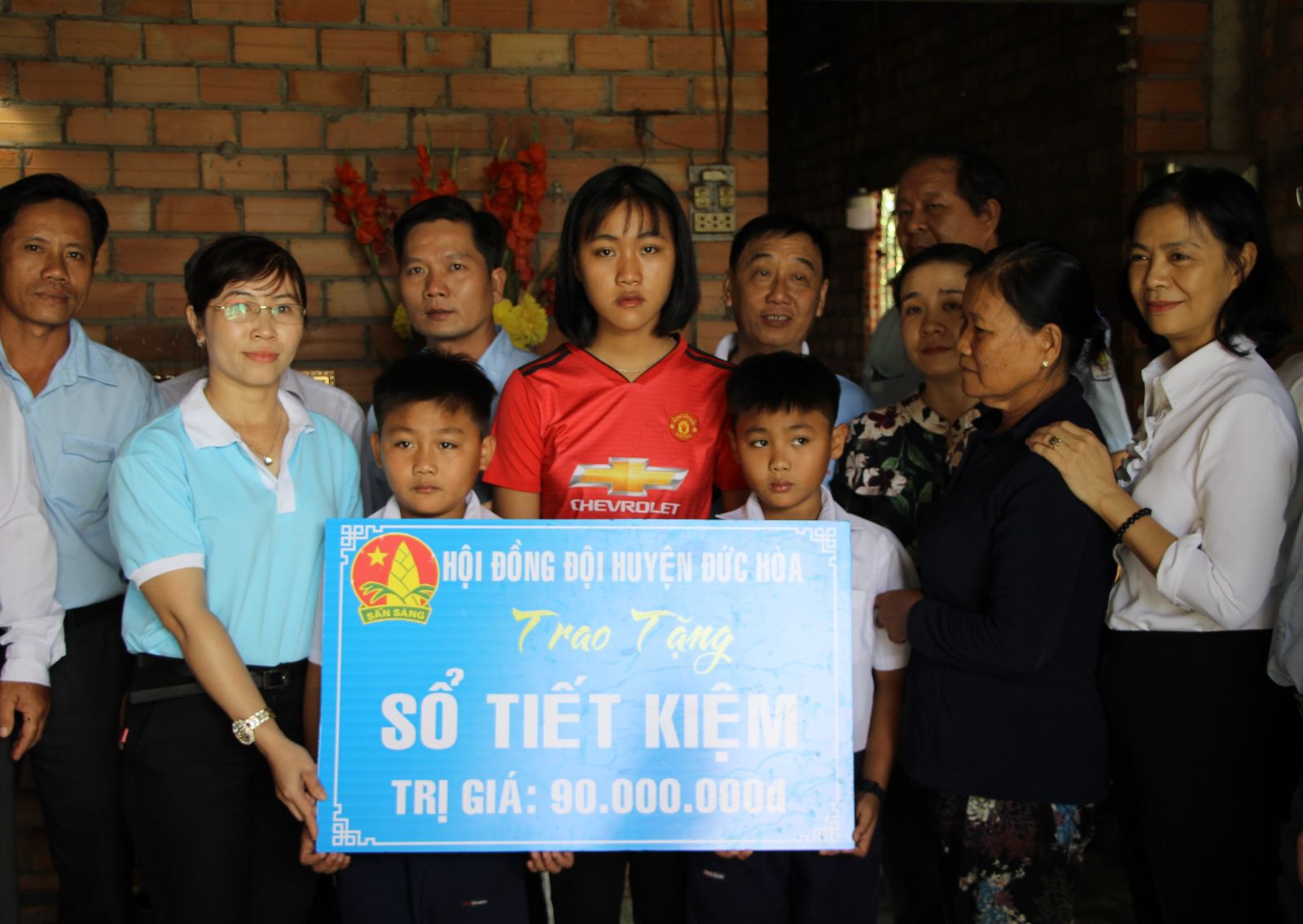 Hội Đồng đội huyện Đức Hòa trao bản tượng trưng sổ tiết kiệm cho các em