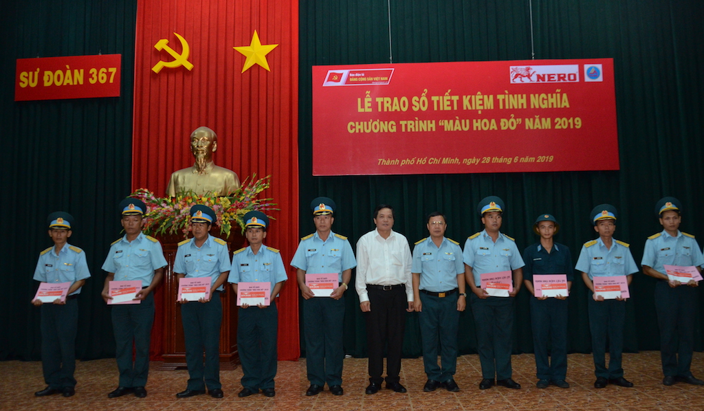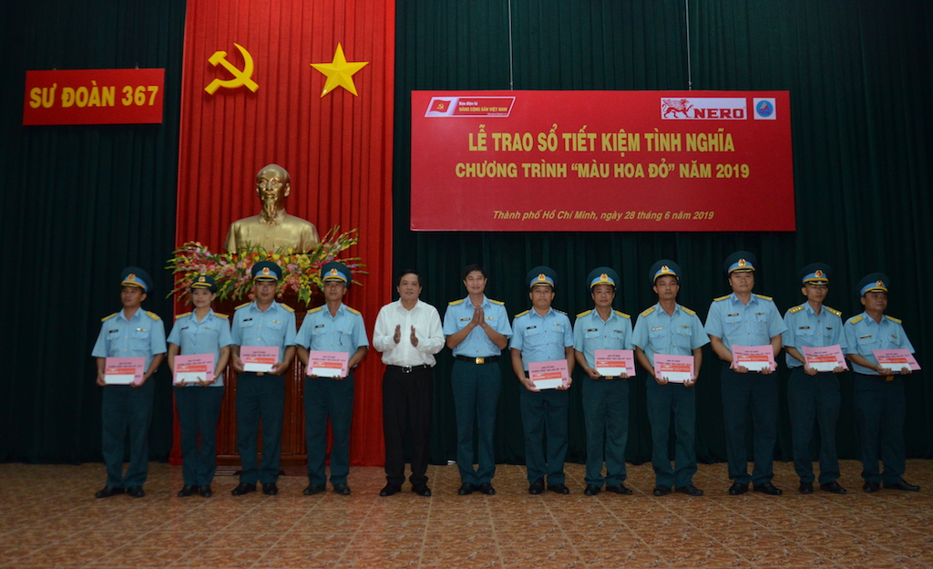 Trong khuôn khổ hoạt động chương trình “Màu hoa đỏ” năm 2019, chiều 28/6, tại Sư đoàn 367, Thành phố Hồ Chí Minh, Báo điện tử Đảng Cộng sản Việt Nam và Công ty TNHH Sơn Nero tổ chức trao tặng 20 sổ tiết kiệm tình nghĩa cho các gia đình chính sách có hoàn cảnh khó khăn thuộc Sư đoàn 367, Quân chủng Phòng không không quân.