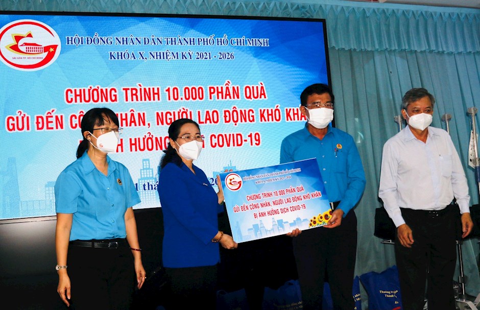 Cùng ngày, Thường trực HĐND TP Hồ Chí Minh và Tổ đại biểu HĐND Thành phố đơn vị 15, 16 đã trao 800 phần quà đến công nhân, người lao động gặp khó khăn do dịch COVID-19 tại quận Bình Tân.