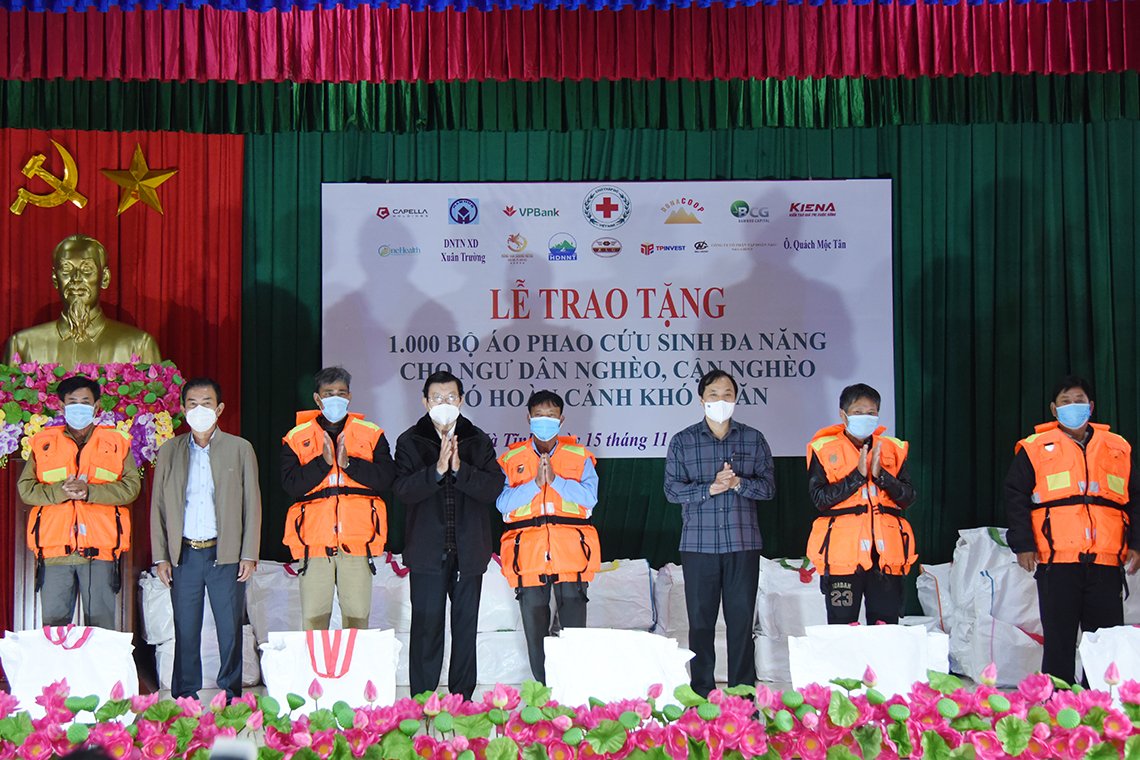 Từ ngày 14-18/11, đoàn công tác trao trực tiếp 2.855 bộ áo phao cứu sinh đa năng tại các tỉnh, thành phố nói trên. Hơn 12.000 bộ đã được chuyển đến Hội Chữ thập Đỏ các địa phương để kịp thời trao cho ngư dân chuẩn bị trước mùa thiên tai.