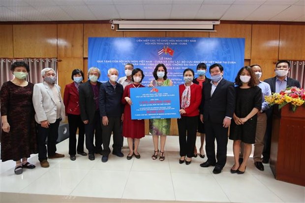 Chiều 27/4, tại trụ sở Liên hiệp các tổ chức hữu nghị Việt Nam, Hội Hữu nghị Việt Nam-Cuba và Câu lạc bộ Cựu sinh viên Việt Nam tại Cuba đã trao 1,57 tỷ đồng và 2.000 lọ gel rửa tay diệt khuẩn, thông qua Đại sứ quán Cuba tại Việt Nam, tặng Viện Cuba hữu nghị với các dân tộc (ICAP) và Hội Hữu nghị Cuba-Việt Nam, là đối tác đại diện nhân dân Cuba tiếp nhận món quà này.