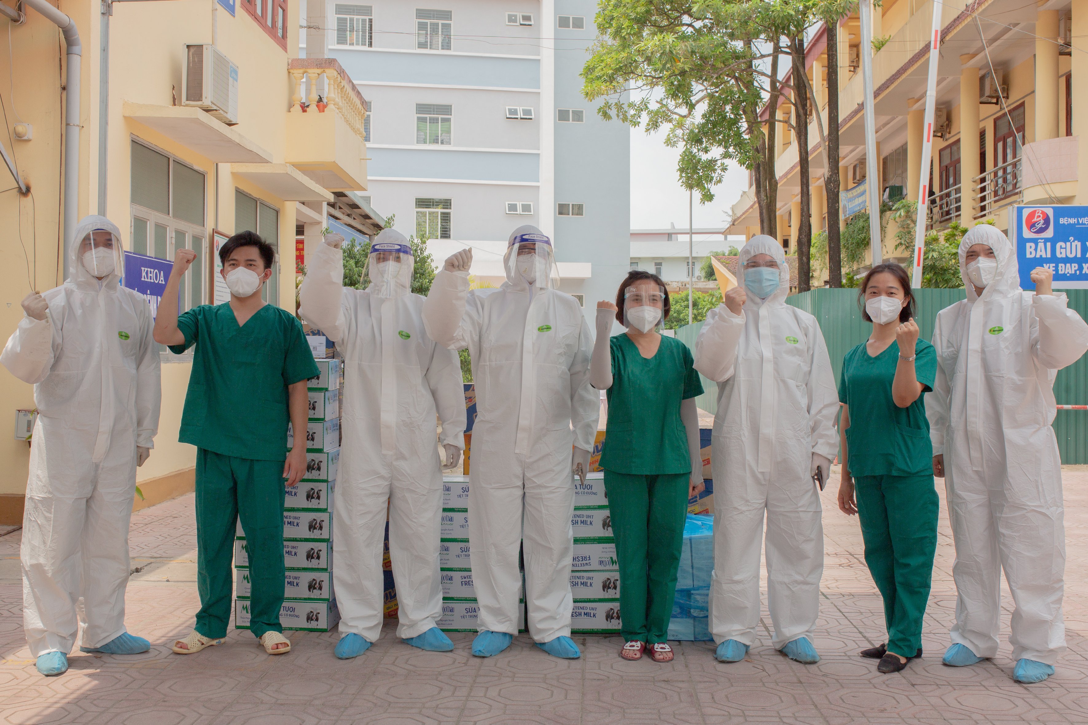 Cùng với đó, Đoàn đã trao tặng 10.000 khẩu trang, 40 thùng sữa, 100 thùng nước điện giải và một số đồ dùng thiết yếu trao tặng cho các y, bác sĩ Bệnh viện Y học Cổ truyền Công an, các y, bác sĩ tại Bệnh viện dã chiến số 2 tỉnh Bắc Giang.