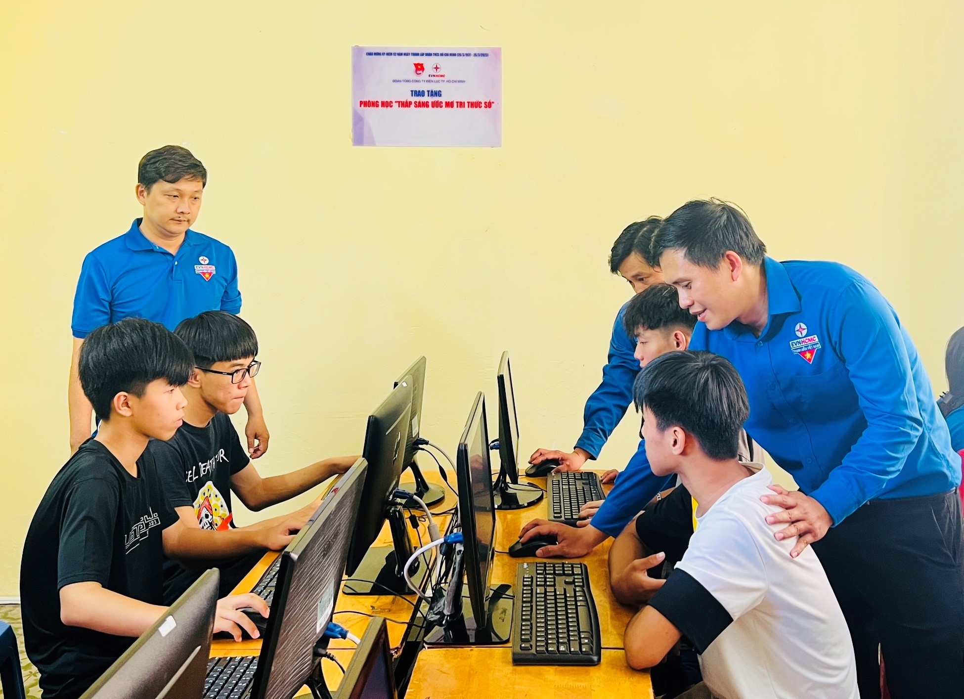 Cụ thể, đoàn viên thanh niên EVNHCMC đã lắp đặt và trao tặng 15 bộ máy vi tính để bàn cho Làng Thiếu niên Thủ Đức. Đây là số máy tính cũ được cán bộ công nhân viên, đoàn viên thanh niên Tổng công ty quyên góp theo lời kêu gọi của Ban Thường vụ Công Đoàn và Ban Thường vụ Đoàn Thanh niên Tổng công ty nhằm thực hiện công trình thanh niên “Thắp sáng ước mơ tri thức số”. Theo đó, cán bộ công nhân viên sẽ quyên góp máy vi tính, thiết bị di động cũ không còn nhu cầu sử dụng, để sửa chữa, cài đặt ứng dụng và trao tặng cho các em thiếu nhi, học sinh khó khăn có nhu cầu học tập trực tuyến, qua đó góp phần nâng cao năng lực số cho thanh thiếu nhi Thành phố. Hiện nay, cán bộ công nhân viên EVNHCMC đang tiếp tục quyên góp để nhân rộng chương trình “Thắp sáng ước mơ tri thức số”.