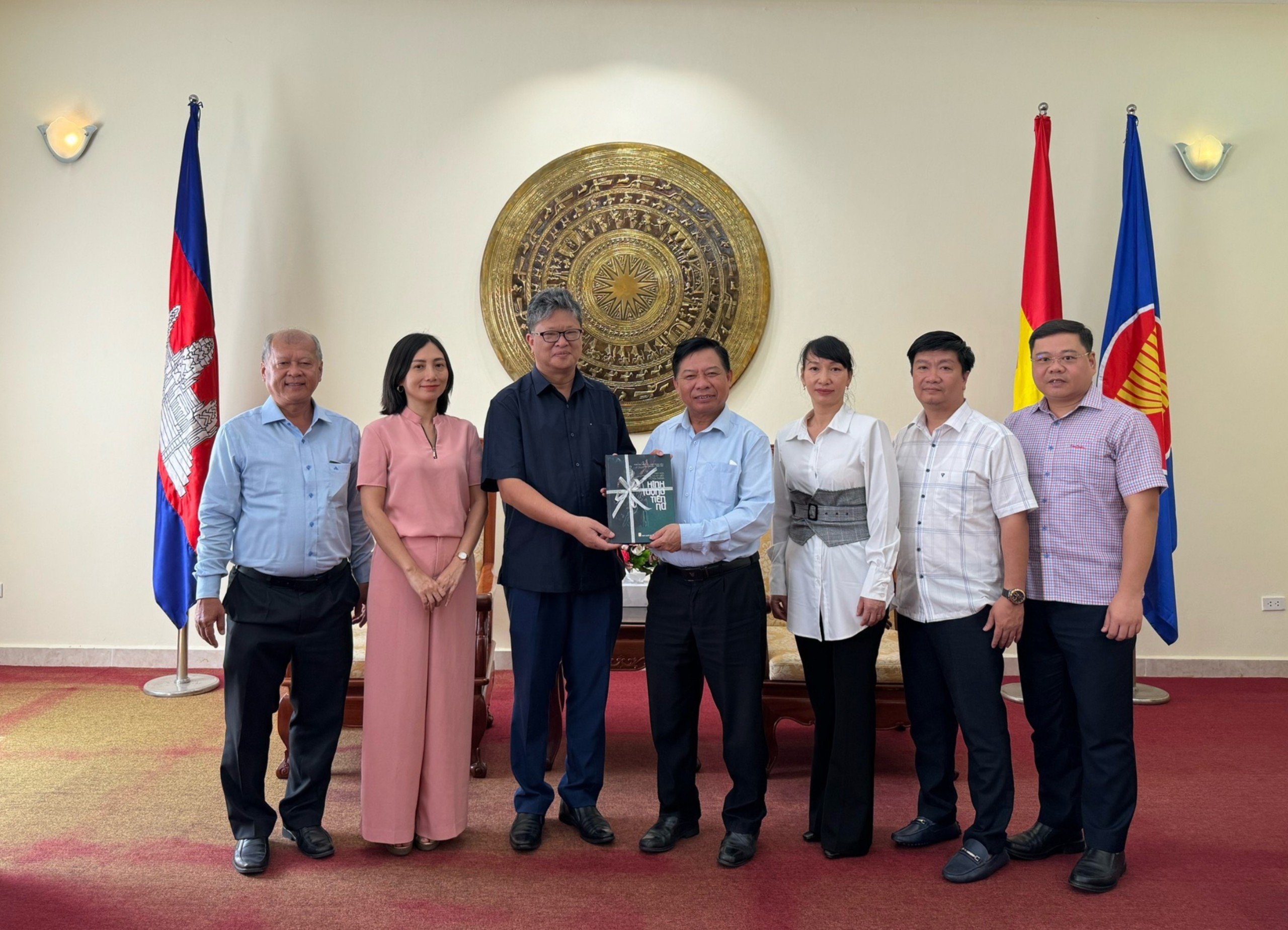 | Ông Nguyễn Huy Tăng, Đại sứ đặc mệnh toàn quyền nước Cộng hòa xã hội chủ nghĩa Việt Nam tại Campuchia (thứ 4 từ phải sang) tiếp đón Đoàn công tác của NXBGDVN. |