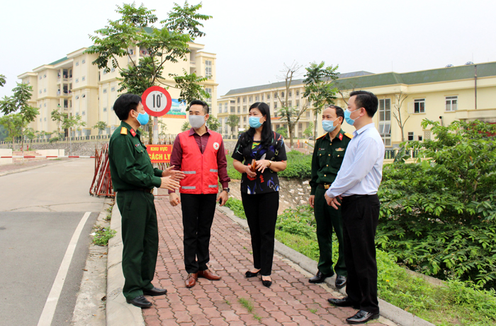 | Lãnh đạo Trung ương Hội Chữ Thập đỏ Việt Nam và Ủy ban MTTQ Việt Nam TP Hà Nội kiểm tra khu cách ly tại Trường Quân sự - Bộ Tư lệnh Thủ đô |