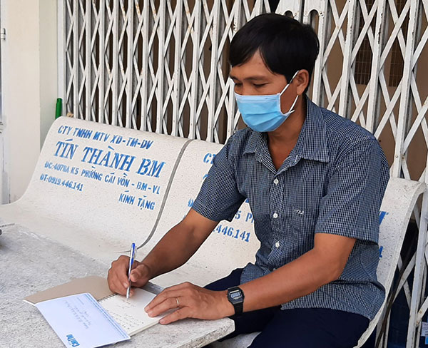 Ngày 20-4, anh Duyên ký nhận 2,9 triệu đồng số tiền bạn đọc gởi hỗ trợ chị Sương. Ảnh: TS