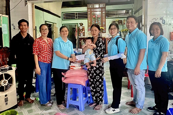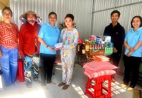 Nhóm thiện nguyện bạn bè Lan Cần Thơ trao tặng quà cho gia đình chị Yên. Ảnh: C.H