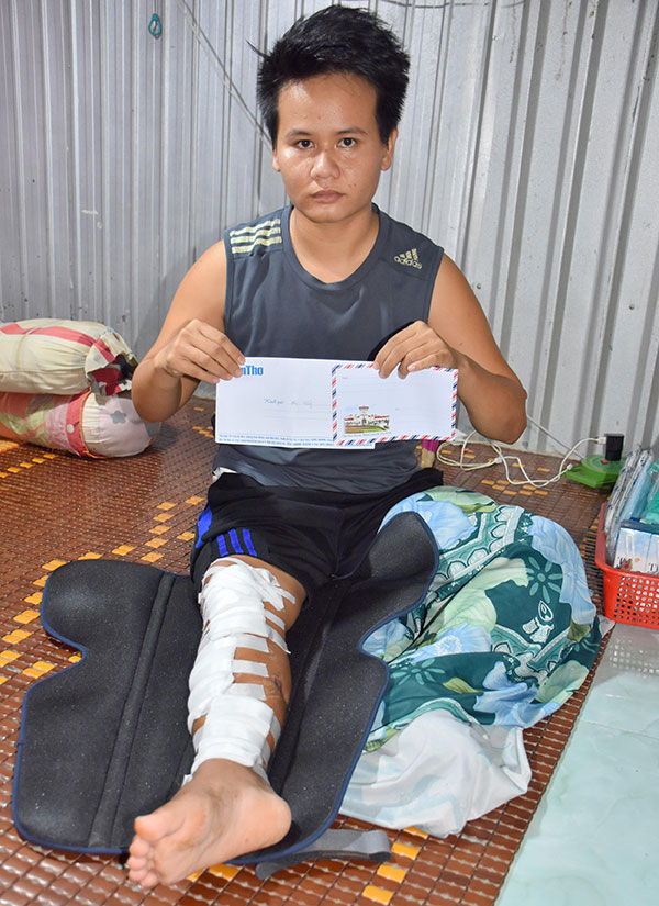 Hôm chúng tôi đến, chị Hằng vừa phẫu thuật chân lần hai tại Bệnh viện Ða khoa tỉnh Kiên Giang trở về. Do vết thương bị hoại tử nên bác sĩ phải phẫu thuật lấy xương mông đưa xuống làm xương ống chân. Nhờ có bảo hiểm nên chi phí phẫu thuật của chị khoảng 10 triệu đồng.