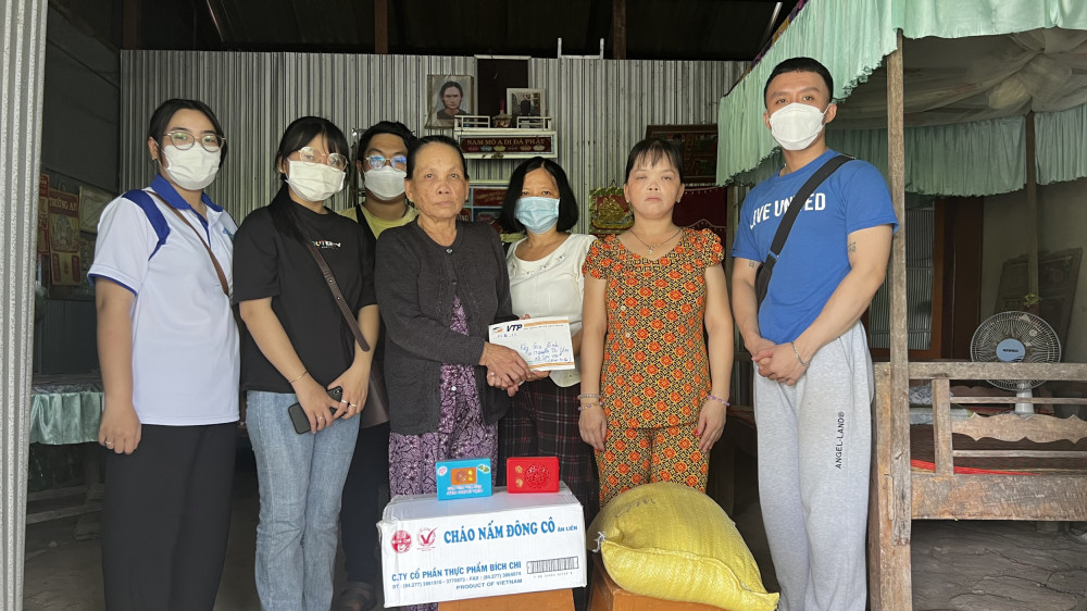 Nhóm cô Kim Hương, Trường Đại học Cần Thơ đã đến thăm hỏi, tặng quà cho gia đình bà Sẩm.