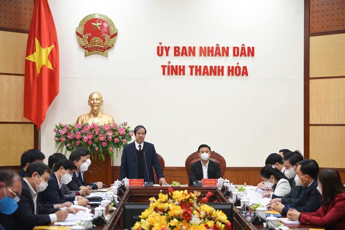 Từ đó, Bộ trường đề nghị tỉnh Thanh Hóa cần tập trung quan tâm rà soát cơ sở vật chất trường lớp, ưu tiên cho các lớp triển khai Chương trình giáo dục phổ thông mới. Đồng thời, quan tâm đến giáo dục dân tộc, thực hiện bình đẳng trong giáo dục, quan tâm việc dạy học tiếng dân tộc và dạy tiếng Việt cho đồng bào dân tộc.