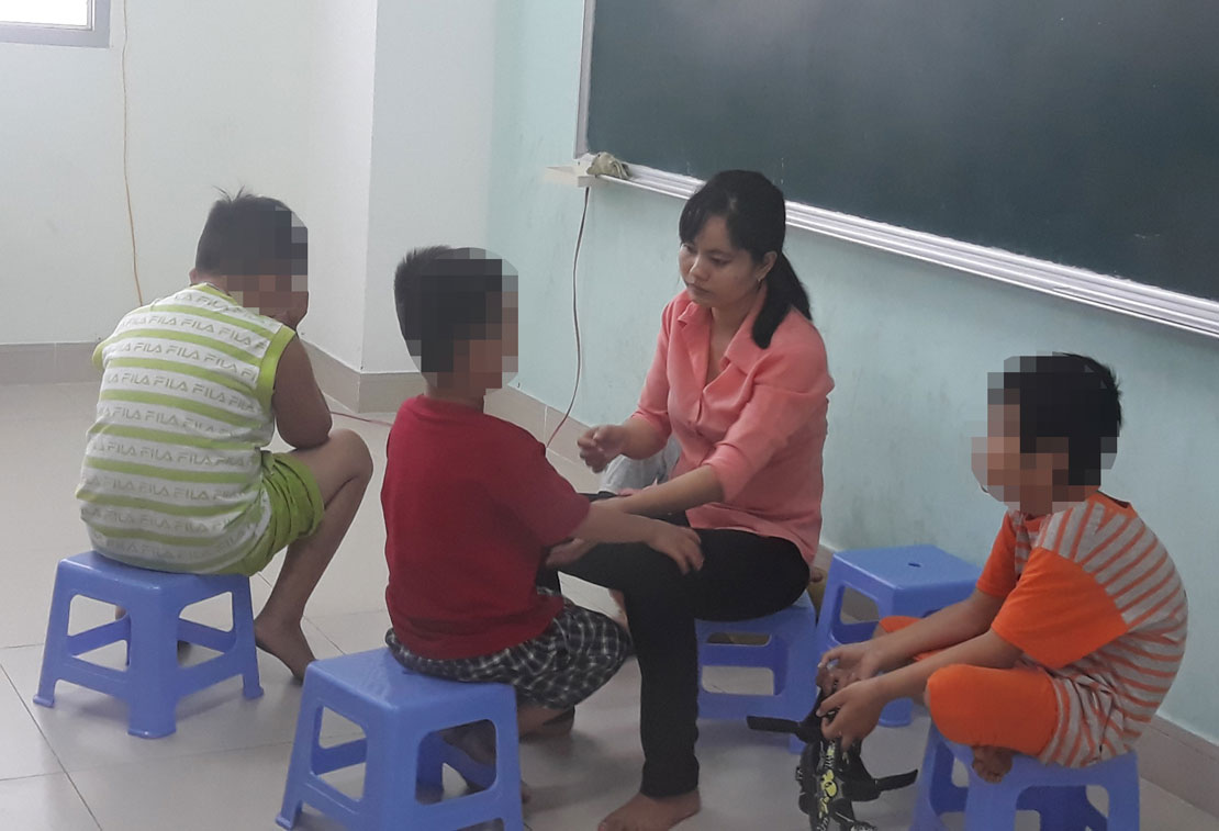 Có mặt tại một lớp Kỹ năng giao tiếp do cô Trần Thị Mộng Tuyền đứng lớp, chúng tôi mới thấu hiểu hết những vất vả của giáo viên. Lớp có 4 em mắc chứng rối loạn phổ tự kỷ, tăng động, chậm phát triển. Các em đều đã bước sang giai đoạn nặng vì không được can thiệp sớm, rất khó làm chủ cảm xúc và thường có những hành vi phản ứng mạnh.