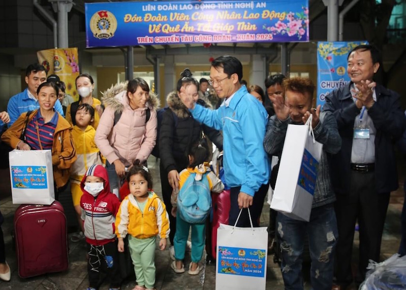 | “Chuyến tàu Công đoàn - Xuân 2024” đưa công nhân lao động làm việc tại các tỉnh phía Nam về quê ăn Tết |