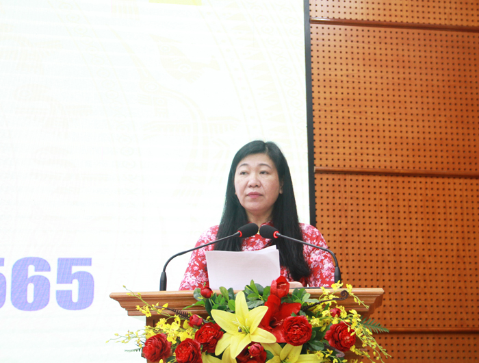 | Chủ tịch Ủy ban MTTQ Việt Nam TP Hà Nội Nguyễn Lan Hương phát biểu tại buổi gặp mặt. |