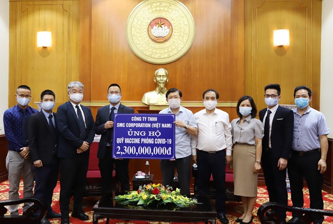 Trao số tiền ủng hộ cho Uỷ ban Trung ương MTTQ Việt Nam, ông Trần Văn Hiện, Quản lý chi nhánh Bắc Ninh của Công ty TNHH SMC Corporation (Việt Nam) chia sẻ, với sự bùng phát trở lại lần thứ tư tại hai tỉnh Bắc Giang và Bắc Ninh, dịch bệnh đã gây ảnh hưởng nặng nề tới các khu công nghiệp và làm đứt gãy chuỗi sản xuất với hàng ngàn công nhân bị cách ly, các nhà máy phải ngưng hoạt động. Đứng trước những khó khăn đó của đất nước và hưởng ứng lời kêu gọi của Chủ tịch nước, Thủ tướng Chính phủ, Đoàn Chủ tịch Ủy ban Trung ương MTTQ Việt Nam, Công ty cảm thấy phải có trách nhiệm nhiều hơn nữa với xã hội và cùng đồng lòng ủng hộ Quỹ vaccine phòng COVID-19 với mong muốn góp sức cùng Đảng, Nhà nước, Chính phủ sớm hoàn thành mục tiêu tiêm vaccine miễn phí cho người dân.