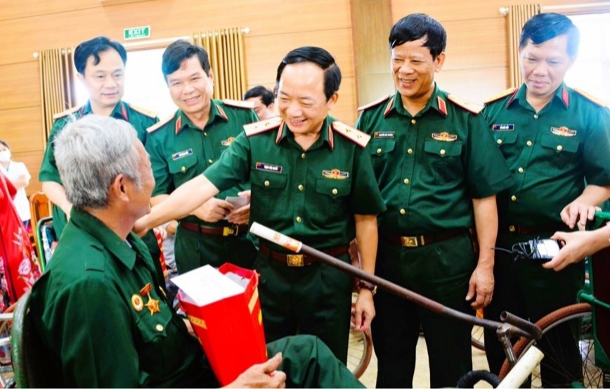 | Trung tướng Trịnh Văn Quyết, Ủy viên Trung ương Đảng, Phó Chủ nhiệm Tổng cục Chính trị QĐND Việt Nam thăm hỏi, tặng quà thương binh nặng tỉnh Hà Nam ngày 12/7/2022. Ảnh: nguonluc.com.vn |