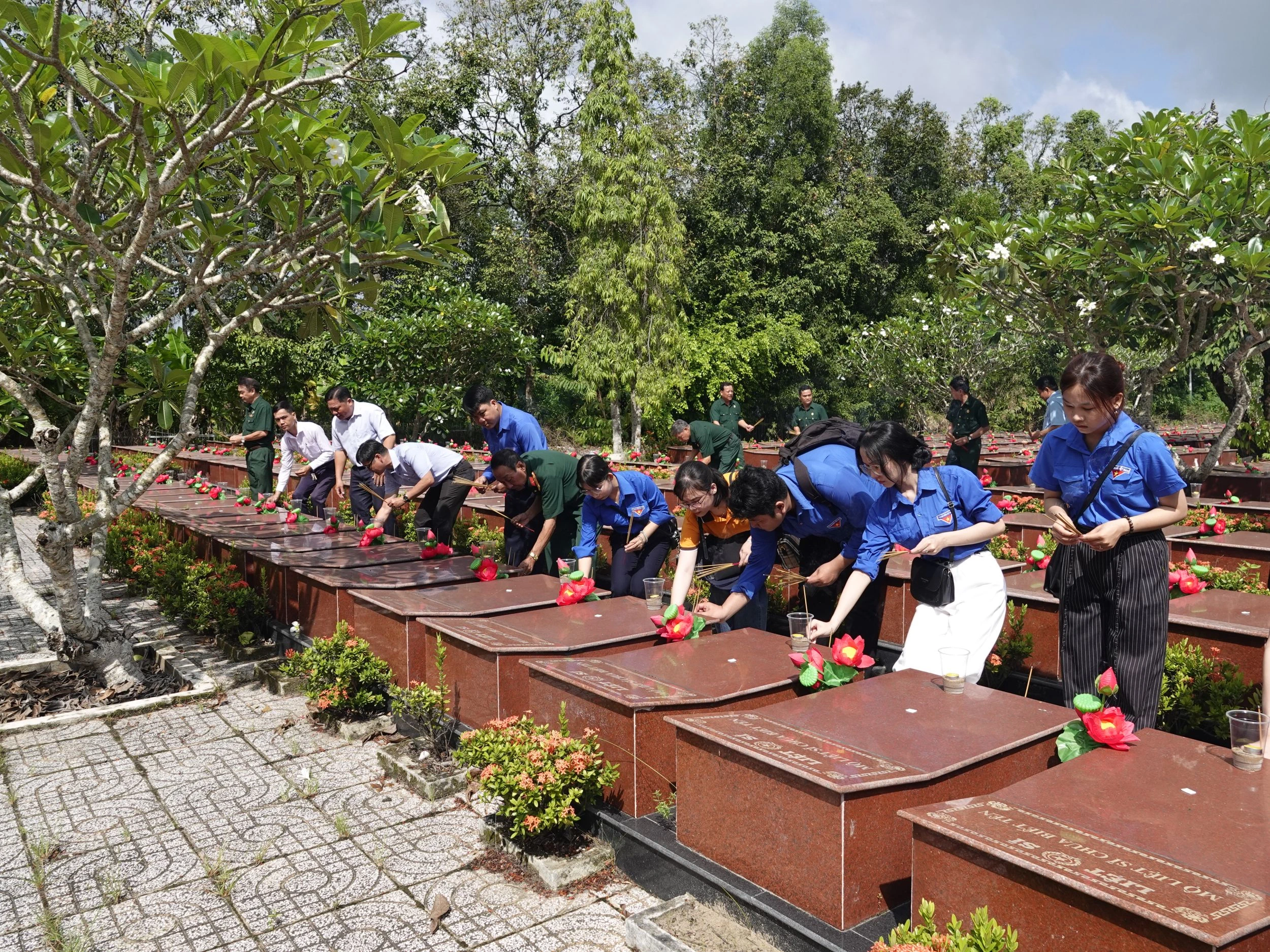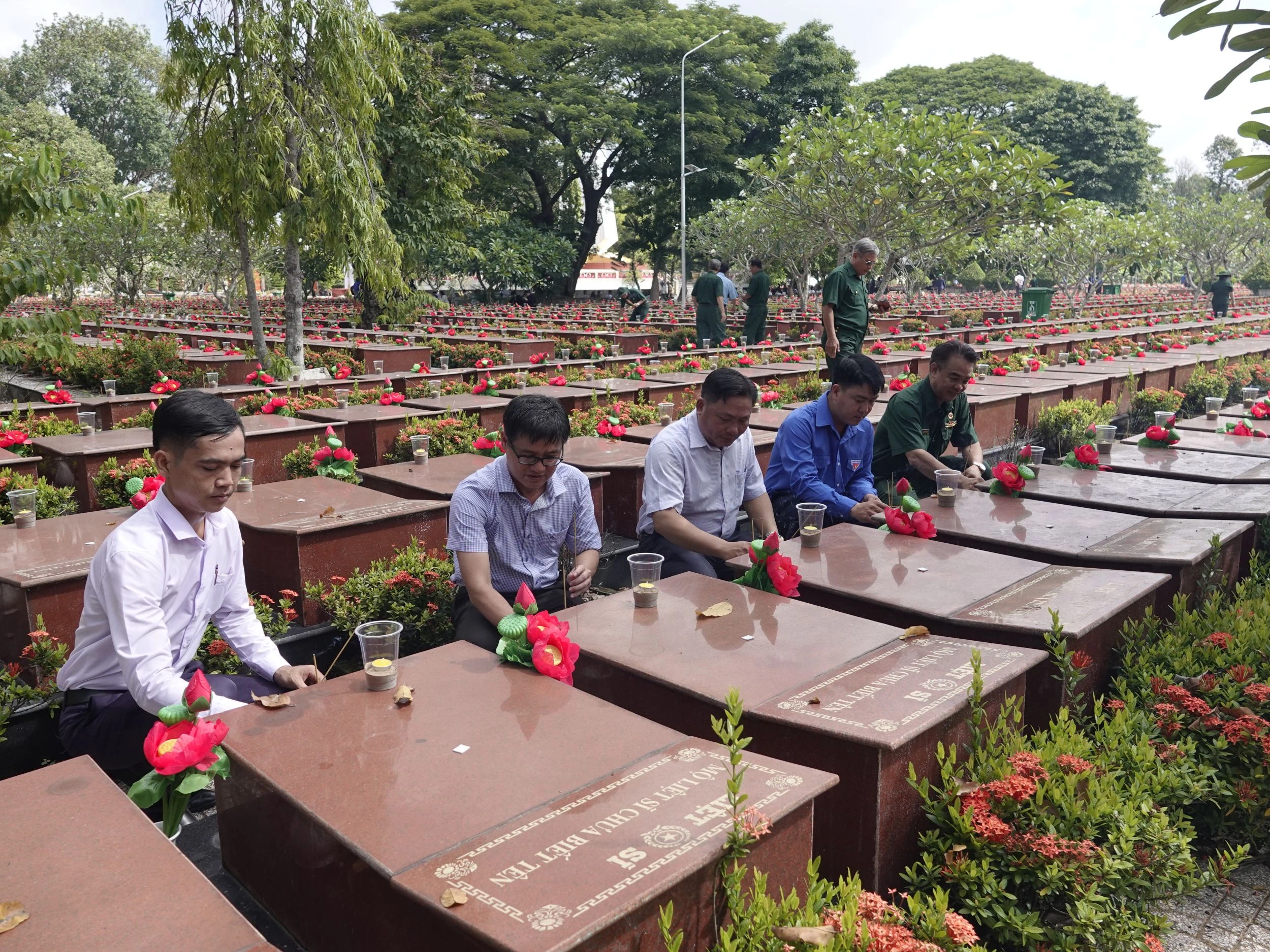 Tại buổi lễ, các đại biểu tri ân những chiến công hào hùng của các anh hùng liệt sĩ. Đồng thời báo công của các ngành, các cấp trong thực hiện truyền thống đền ơn đáp nghĩa, uống nước nhớ nguồn với các hoạt động: chăm sóc gia đình liệt sĩ, thương binh, bệnh binh, người có công; truy tìm, quy tập hài cốt liệt sĩ; xây dựng nhà tình nghĩa, nhà nghĩa tình đồng đội… Các đại biểu đã thành kính tưởng niệm, thắp hương từng phần mộ và mời hương linh anh hùng liệt sĩ dùng mâm cơm nghĩa tình đồng đội.