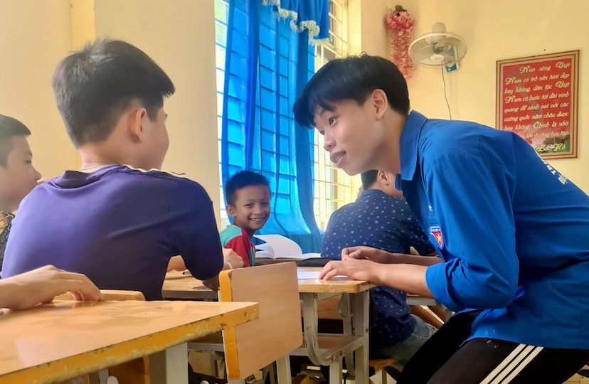 | Sinh viên tình nguyện tham gia giảng dạy cho các em nhỏ |