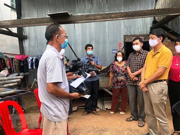 | Tổng Lãnh sự Việt Nam tại tỉnh Preah Sihanouk Vũ Ngọc Lý (áo vàng) tặng quà gia đình cựu quân tình nguyện Việt Nam tại tỉnh Kep. (Ảnh minh họa) |
