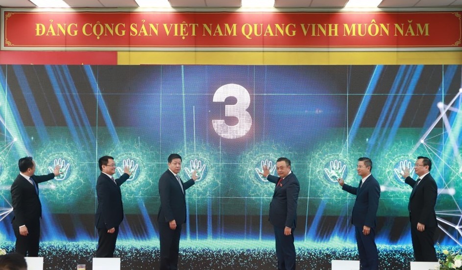 | Chủ tịch thành phố Hà Nội Trần Sỹ Thanh cùng các đại biểu nhấn nút khai trương hệ thống vé điện tử liên thông đa phương thức cho giao thông công cộng |