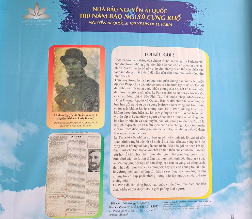 Le Paria duy trì hoạt động được 4 năm (1922 - 1926), xuất bản được 38 số với nội dung chống chủ nghĩa thực dân và kêu gọi đoàn kết các dân tộc bị áp bức, đã góp phần quan trọng vào việc truyền bá chủ nghĩa Mác-Lênin vào Đông Dương cũng như các nước thuộc địa. Báo cổ vũ các tầng lớp nhân dân lao động đứng lên đấu tranh tự giải phóng khỏi ách nô lệ và có ảnh hưởng lớn đến công luận ở Pháp, đặc biệt đối với phong trào yêu nước ở các thuộc địa. Triển lãm diễn ra đến ngày 25/6./.