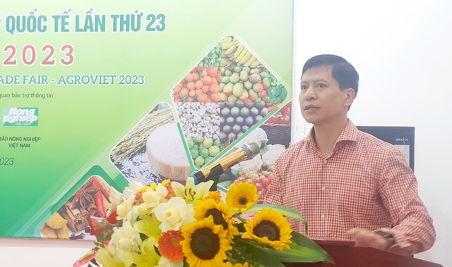 Tại họp báo, ông Nguyễn Hồng Việt, Trưởng phòng Tổ chức sự kiện và Dịch vụ thương mại, Trung tâm Xúc tiến thương mại Nông nghiệp cho biết, với quy mô gần 200 gian hàng trong nước và quốc tế, AgroViet 2023 là hoạt động xúc tiến thương mại thường niên quan trọng được Bộ NN&PTNT chỉ đạo Trung tâm Xúc tiến thương mại Nông nghiệp tổ chức.