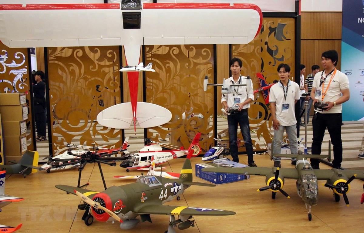 Máy bay mô hình điều khiển từ xa được giới thiệu tại Triển lãm. (Ảnh: Tiến Lực/TTXVN)